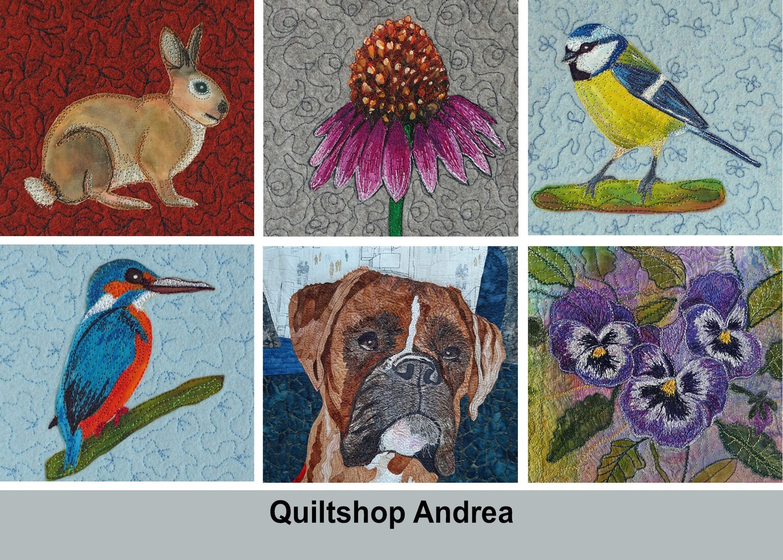 Voor een art quilt van ongeveer 30x30 cm of 40x40 cm kunt u foto’s van een dier, een gebouw maar ook een landschap gebruiken.
