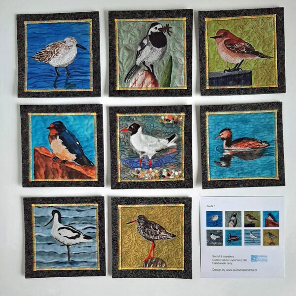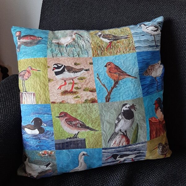 Op basis van eigen foto’s van vogels heb ik een collectie quilts met vogels gemaakt. De etuis, kussens en kaarten zijn unieke cadeaus voor de vele liefhebbers van vogels.